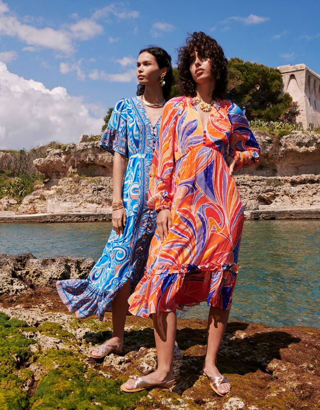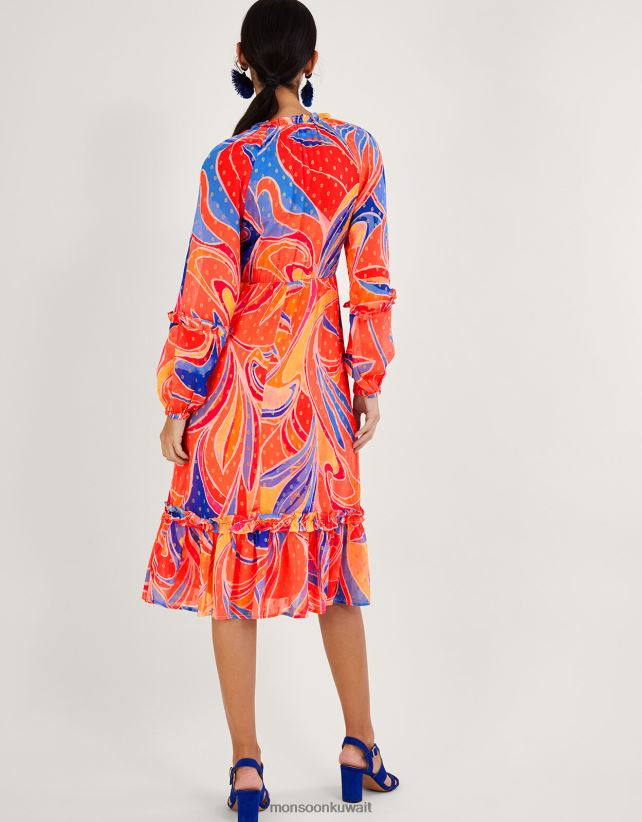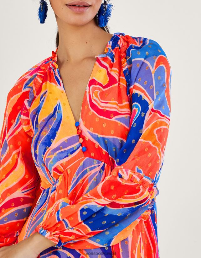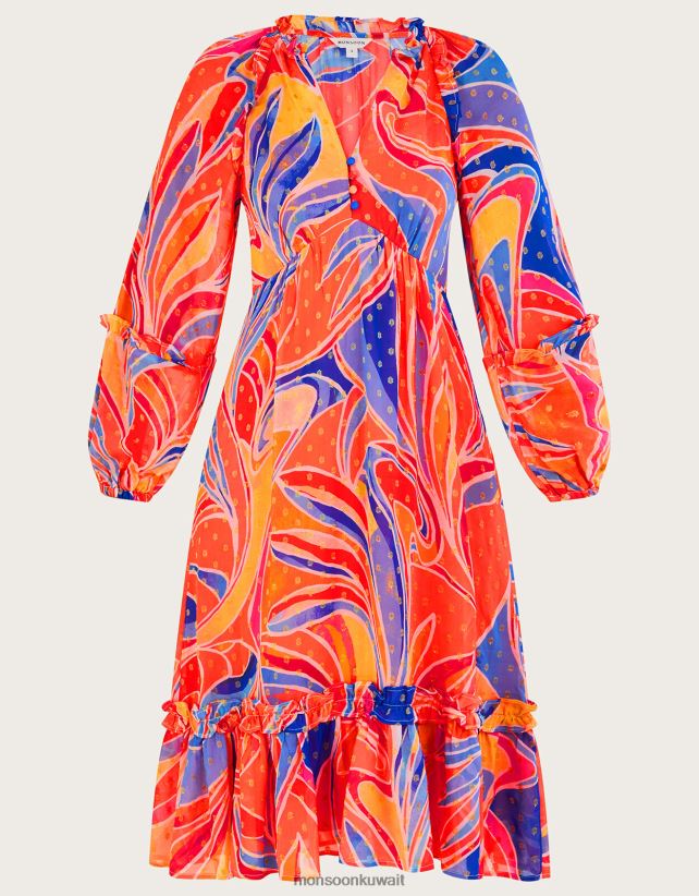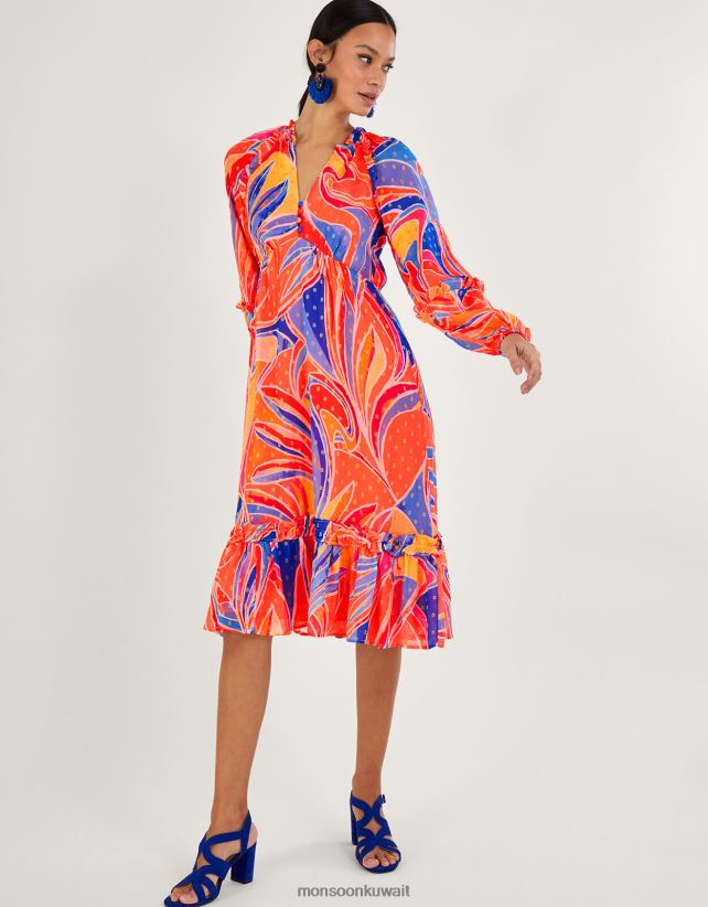 فستان بطبقات بطبعات آرييل من الفيسكوز المستدام ملابس البرتقالي Monsoon نحيف N4BV8X520 - Monsoon online customer service