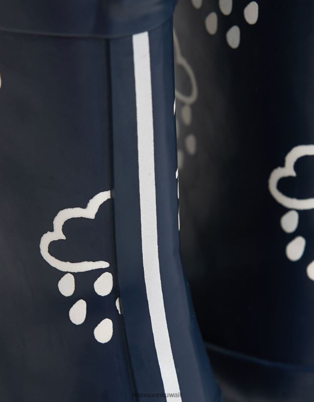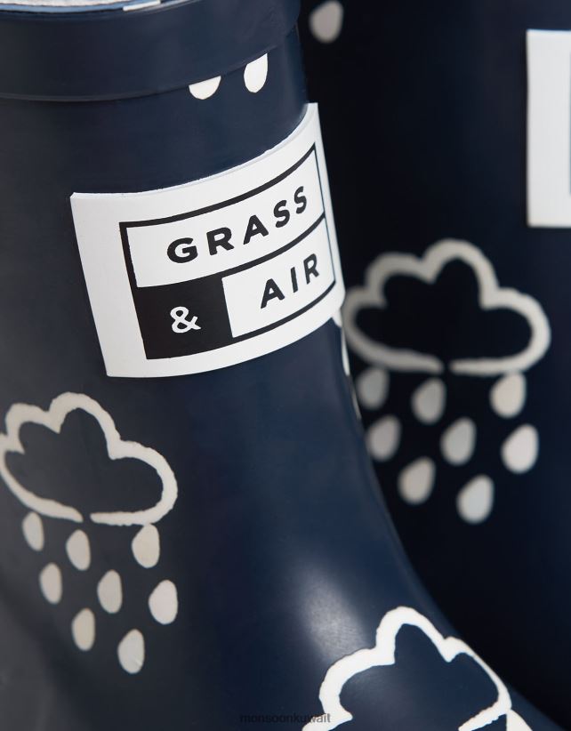 حذاء Wellies باللون الأزرق الذي يكشف عن اللون من العشب والهواء أحذية الأزرق الداكن) Monsoon أطفال N4BV8X2374 - Monsoon kuwait avenues